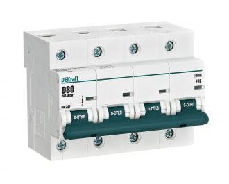 Автоматический выключатель серии ВА-201 DEKraft, 4P, номинальный ток 80 А, характеристика D, отключающая способность 10 кА, ширина - 6 мод. х 18мм. Монолитная лицевая панель обеспечивает безопасную эксплуатацию аппарата. Окошко-индикатор всегда показывает состояние аппарата вне зависимости от положения рукоятки управления. Двухпозиционная защелка облегчает монтаж выключателя. Клеммы рассчитаны на подключение проводников сечением до 35 кв.мм.