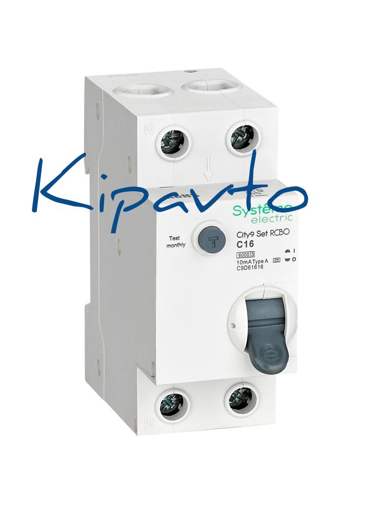 Автоматические выключатели дифференциального тока (АВДТ) серии City9 Set Systeme Electric,1P+N, номинальный ток 16 А, характеристика С, Icn - 6 кА, ток утечки 10 мА, тип А. АВДТ применяется в электрических сетях напряжением 230В. Предназначен для защиты сети от перегрузок, людей от поражения электрическим током и токов короткого замыкания. Уставка по току утечки 10 мА обеспечивает гарантированную защиту людей при прямом прикосновении. Кнопка тест обеспечивает проверку работоспособности аппарата. Крепление на DIN-рейку шириной 35 мм. Безопасные клеммы.