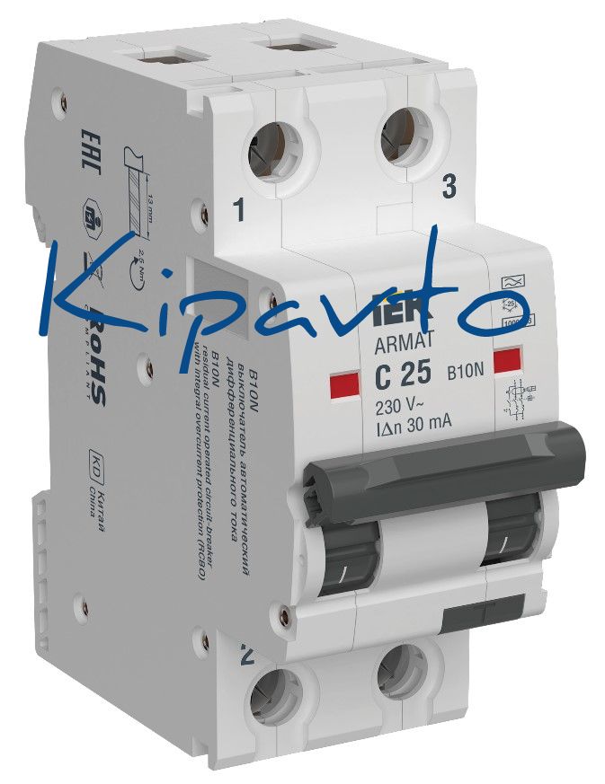 Выключатель автоматический дифференциального тока B10N 2P C25 30мА тип A