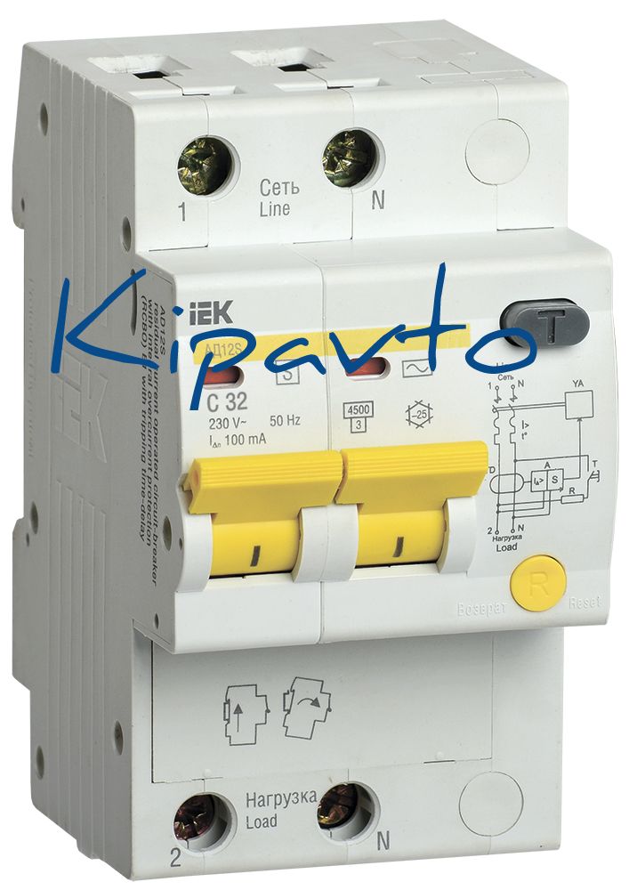 Выключатель автоматический дифференциальный АД12S 2Р 32А 100мА
