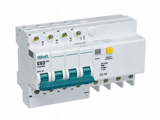 Автоматический выключатель дифференциального тока серии ДИФ-101 DEKraft, 4P, ном.ток 63 А, характеристика C, откл.способность Icn 4,5 kA, ток утечки 30 мА, блок дифф.защиты - электронный, ширина - 8 мод. х 18 мм, монтаж - на DIN-рейку. АВДТ серии ДИФ-101 применяются в сетях напряжением до 400 В пер.тока для защиты человека от поражения электрическим током и электроустановок от сверхтоков и токов утечки. Для расширения функционала АВДТ возможно использование аксессуаров от выключателей серии ВА-101.