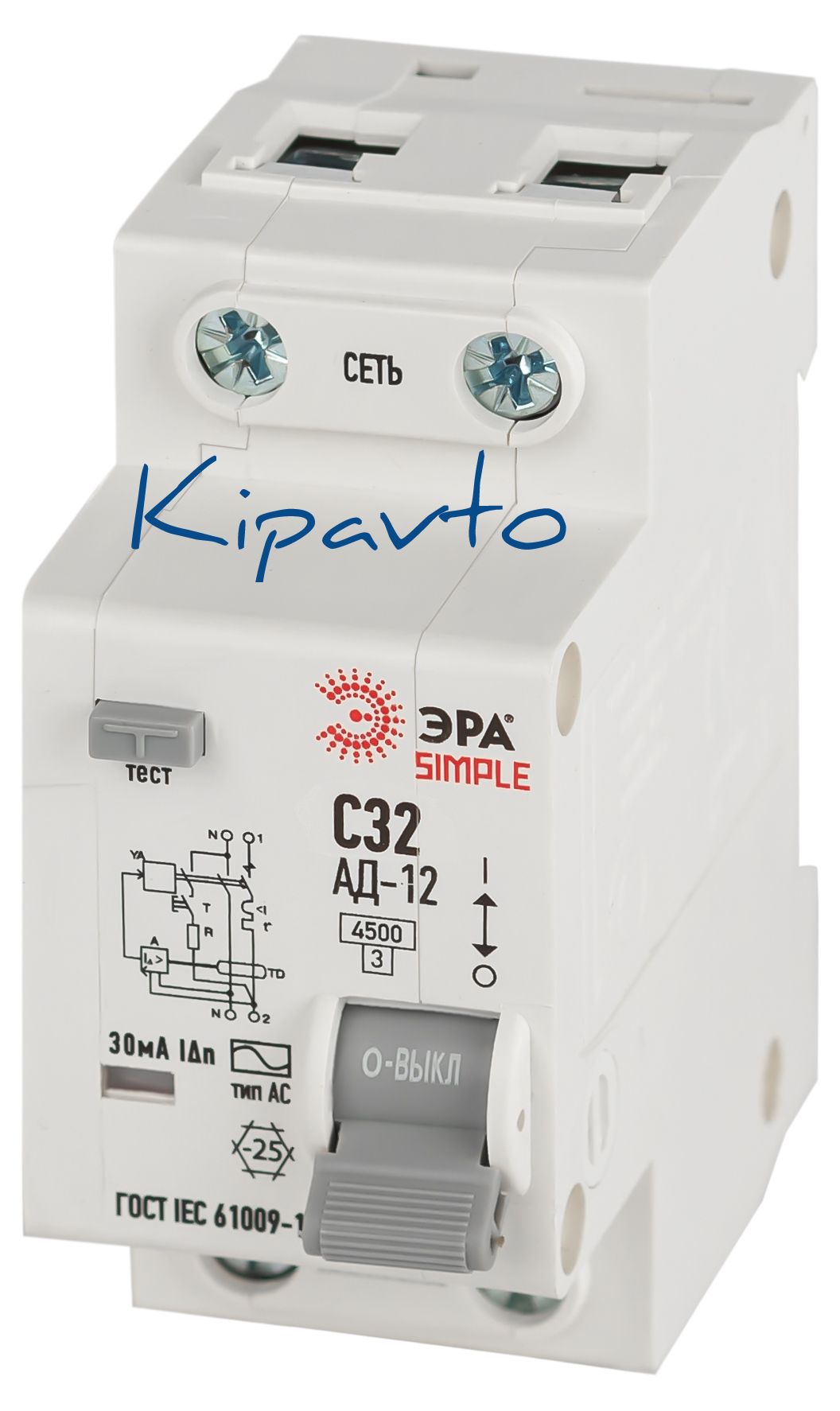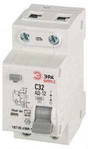 Выключатель автоматический дифференциальный электронный АВТ 4,5кА SIMPLE D12E2C32AC30 АД-12 1P+N С32 30мА тип АС