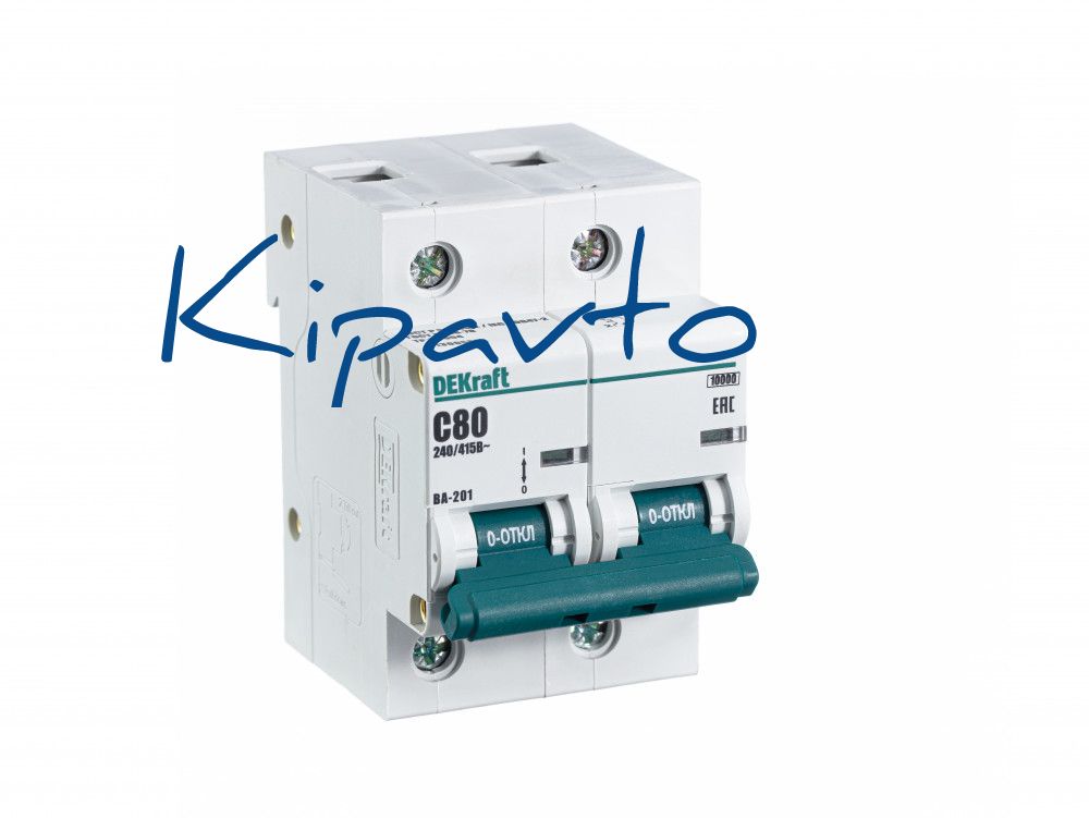 Автоматический выключатель серии ВА-201 DEKraft, 2P, номинальный ток 80 А, характеристика С, отключающая способность 10 кА, ширина - 3 мод. х 18мм. Монолитная лицевая панель обеспечивает безопасную эксплуатацию аппарата. Окошко-индикатор всегда показывает состояние аппарата вне зависимости от положения рукоятки управления. Двухпозиционная защелка облегчает монтаж выключателя. Клеммы рассчитаны на подключение проводников сечением до 35 кв. мм.