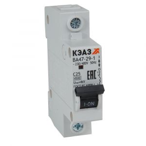 Модульный автоматический 1 полюсный выключатель переменного тока с предельной коммутационной способностью при переменном токе 4.5 кА на номинальный ток 40 А . Модульные автоматические выключатели КЭАЗ на токи до 63А защищают оборудование от токов перегрузки и короткого замыкания в системах распределения электроэнергии. Автомат ВА 47-29 специально разработан для использования в экономичных решениях с ограниченным бюджетом.