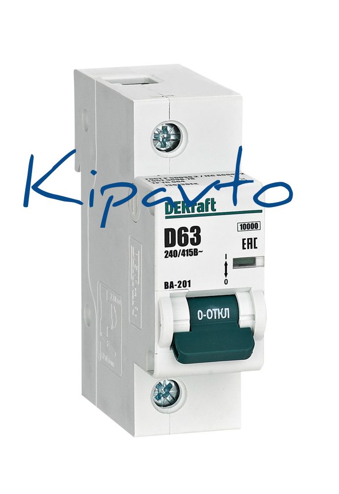 Автоматический выключатель серии ВА-201 DEKraft, 1P, номинальный ток 63 А, характеристика D, отключающая способность 10 кА, ширина - 1,5 мод. х 18мм. Монолитная лицевая панель обеспечивает безопасную эксплуатацию аппарата. Окошко-индикатор всегда показывает состояние аппарата вне зависимости от положения рукоятки управления. Двухпозиционная защелка облегчает монтаж выключателя. Клеммы рассчитаны на подключение проводников сечением до 35 кв.мм.