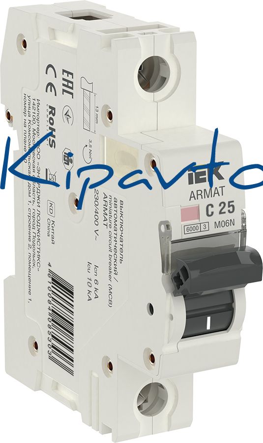 Автоматические выключатели ARMAT серии M06N предназначены для защиты цепей от перегрузки и короткого замыкания. Модельный ряд включает в себя устройства с характеристиками срабатывания B, C, D и номинальными токами от 0, 5 до 63 А. Номинальная отключающая способность автоматических выключателей ARMAT серии M06N составляет 6 кА. Предельная отключающая способность варьируется в зависимости от номинала от 10 до 50 кА.