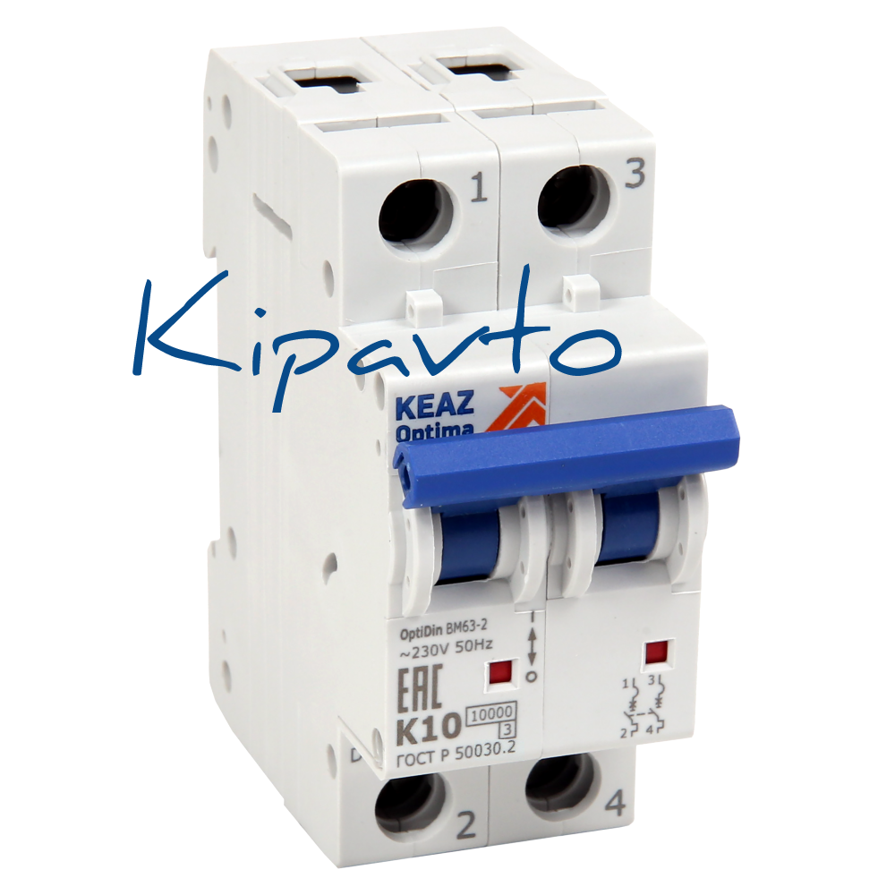 Модульный автоматический 2 полюсный выключатель переменного тока с предельной коммутационной способностью при переменном токе 10 кА на номинальный ток 4 А. Модульные автоматические выключатели OptiDin ВМ63 предназначены для защиты электрических цепей от перегрузки и токов короткого замыкания, проведения тока в нормальном режиме и оперативных включений и отключений указанных цепей. Рекомендованы к применению в системах защиты и распределения электроэнергии в промышленности, в сегменте коммерческого и коттеджного строительств, а также в системах автоматизации и управления технологическими процессами.