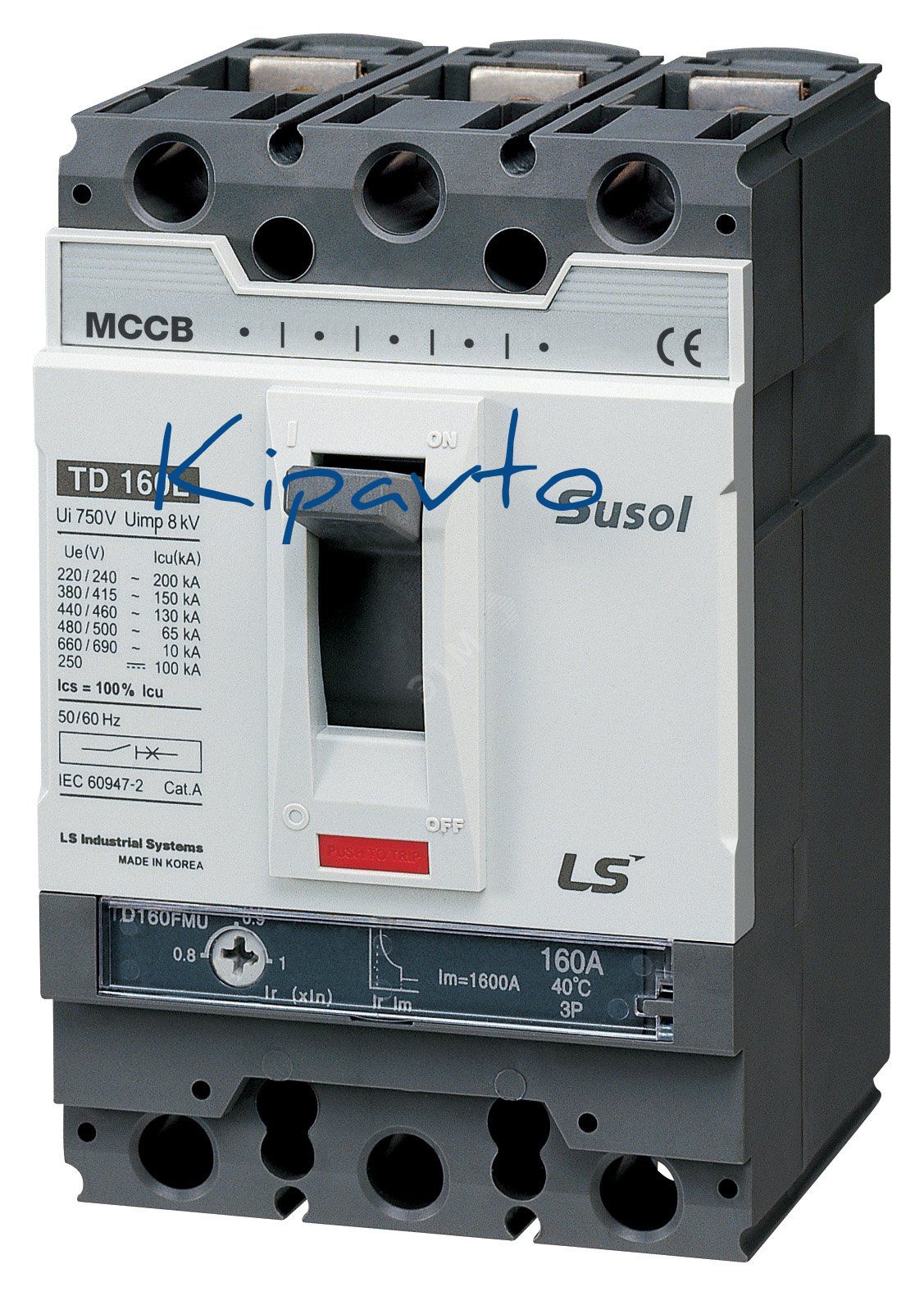 Силовой 3 полюсный автоматический выключатель переменного тока в литом корпусе на номинальный ток 125 А, с термомагнитным нерегулируемым расцепителем, c отключающей способностью 50кА. Трехполюсные автоматические выключатели LS Electric типа Susol TD предназначены для применения в электрических цепях с напряжением 690 В переменного тока частотой 50 гЦ, их защиты от токов короткого замыкания, токов перегрузки, а также для нечастых оперативных включений и отключений.
