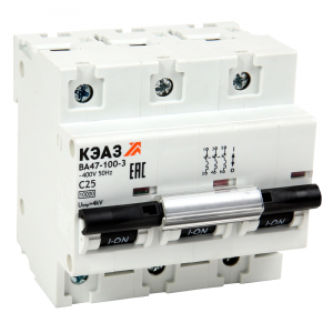 Модульный автоматический 3 полюсный выключатель переменного тока с предельной коммутационной способностью при переменном токе 10 кА на номинальный ток 16 А . Выключатели предназначены для применения в электрических цепях напряжением до 400 В переменного тока частоты 50 Гц, их защиты при перегрузках и коротких замыканиях, проведения тока в нормальном режиме и оперативных включений и отключений указанных цепей. Автомат ВА47 100 специально разработан для использования в экономичных решениях с ограниченным бюджетом.