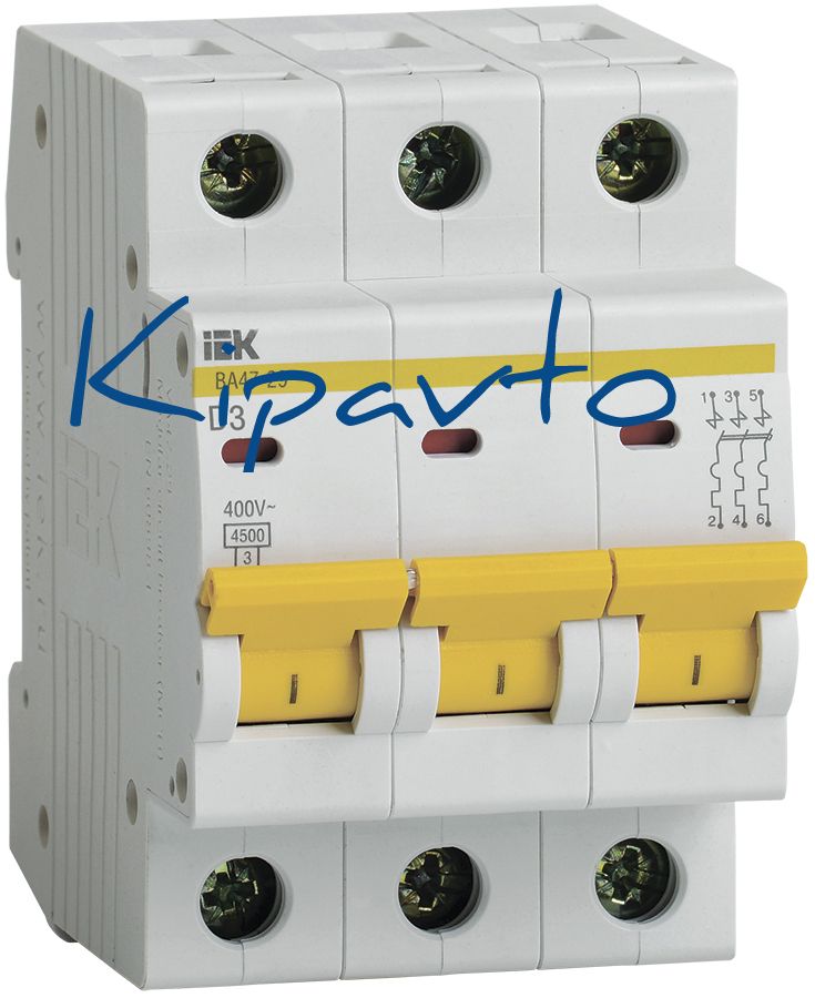Выключатель автоматический трехполюсный 3А D ВА47-29 4.5кА