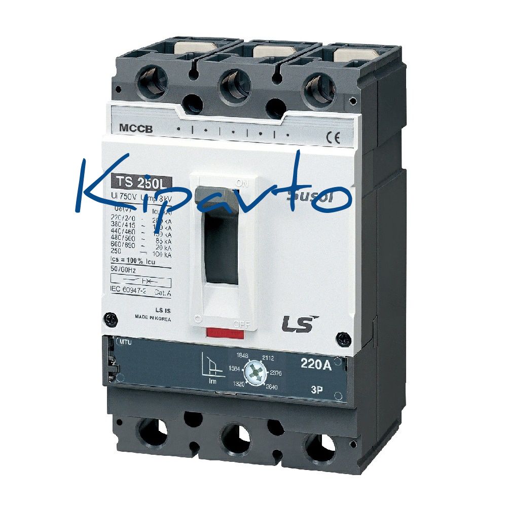 Силовой 3 полюсный автоматический выключатель переменного тока в литом корпусе на номинальный ток 50 А, с магнитным расцепителем, c отключающей способностью 50кА. Трехполюсные автоматические выключатели LS Electric типа Susol TS предназначены для применения в электрических цепях с напряжением 690 В переменного тока частотой 50 гЦ, их защиты от токов короткого замыкания, токов перегрузки, а также для нечастых оперативных включений и отключений.