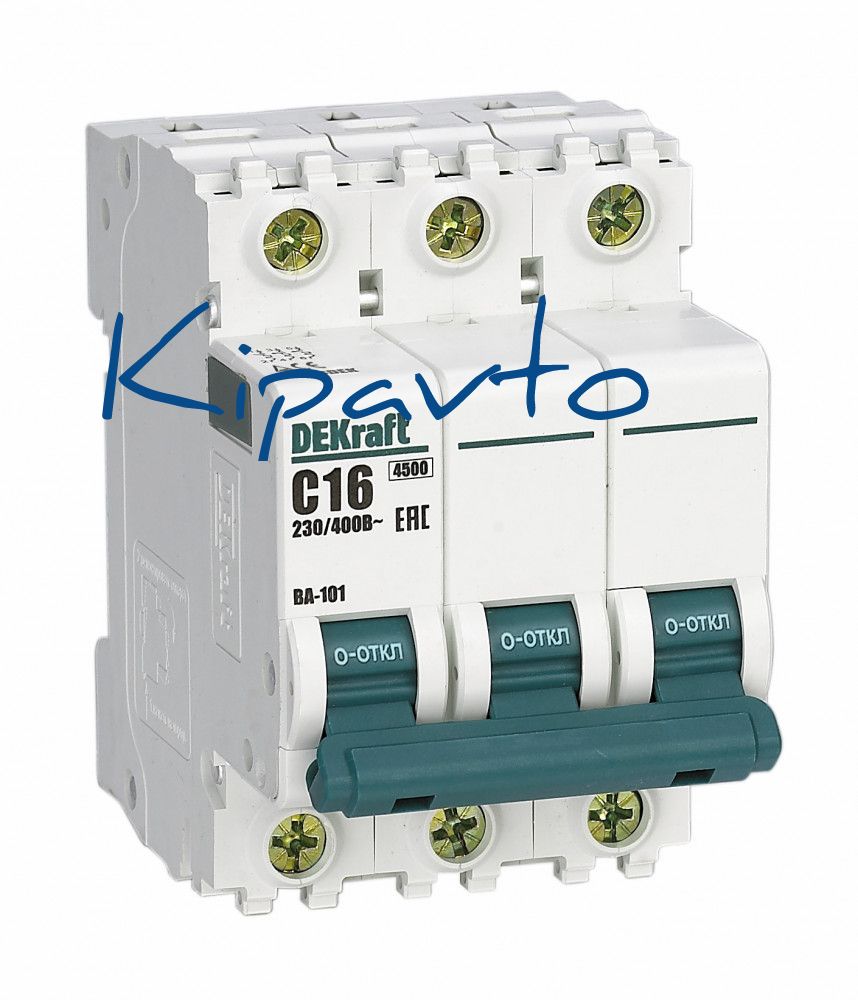 Автоматический выключатель серии ВА-101 DEKraft, 3P, номинальный ток 6 А, характеристика D, отключающая способность 4,5 кА. Новый механизм расцепления мгновенно разрывает цепь при возникновении аварии. 5 монолитных заклепок повышают прочность корпуса аппарата. Сплошная лицевая панель обеспечивает безопасность эксплуатации аппарата. Боковые каналы охлаждения повышают стабильность работы при высоких температурах окружающей среды. Полностью автоматизированный контроль качества производства.