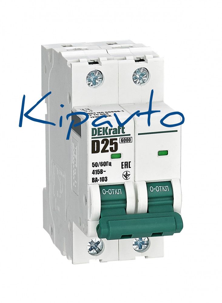Автоматический выключатель серии ВА-103 NEW Dekraft, 2P, номинальный ток 25 А, характеристика D, отключающая способность 6 кА, что позволяет использовать аппараты в качестве вводных. 5 монолитных заклепок повышают прочность корпуса аппарата. Окошко-индикатор всегда показывает состояние контактов вне зависимости от положения рукоятки управления. Боковые каналы охлаждения повышают стабильность работы при высоких температурах окружающей среды. Есть возможность установки дополнительных аксессуаров с левой стороны устройства. Аппарат на 100% совместим с корпусами и оболочками Dekraft, Systeme Electric.