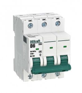 Автоматический выключатель серии ВА-103 NEW Dekraft, 3P, номинальный ток 6 А, характеристика D, отключающая способность 6 кА, что позволяет использовать аппараты в качестве вводных. 5 монолитных заклепок повышают прочность корпуса аппарата. Окошко-индикатор всегда показывает состояние контактов вне зависимости от положения рукоятки управления. Боковые каналы охлаждения повышают стабильность работы при высоких температурах окружающей среды. Есть возможность установки дополнительных аксессуаров с левой стороны устройства. Аппарат на 100% совместим с корпусами и оболочками Dekraft, Systeme Electric.