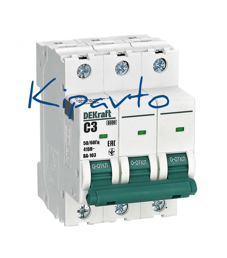 Автоматический выключатель серии ВА-103 NEW Dekraft, 3P, номинальный ток 3 А, характеристика C, отключающая способность 6 кА, что позволяет использовать аппараты в качестве вводных. 5 монолитных заклепок повышают прочность корпуса аппарата. Окошко-индикатор всегда показывает состояние контактов вне зависимости от положения рукоятки управления. Боковые каналы охлаждения повышают стабильность работы при высоких температурах окружающей среды. Есть возможность установки дополнительных аксессуаров с левой стороны устройства. Аппарат на 100% совместим с корпусами и оболочками Dekraft, Systeme Electric.