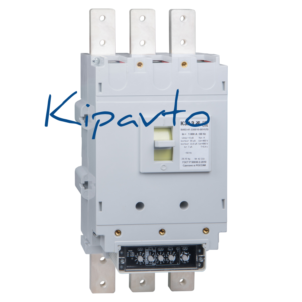 Силовой 3 полюсный автоматический выключатель переменного тока в литом корпусе на номинальный ток 1000 А. Выключатели КЭАЗ предназначены для применения в электрических цепях переменного тока частоты 50, 60 Гц напряжением 690 В, для нечастых оперативных включений и отключений (до 6 в час), указанных цепей и защиты электрооборудования от перегрузок и коротких замыкании, а также нечастых прямых пусков асинхронных двигателей. Выключатели изготавливаются с полупроводниковым максимальным расцепителем тока на базе микроконтроллера Almega 16L.