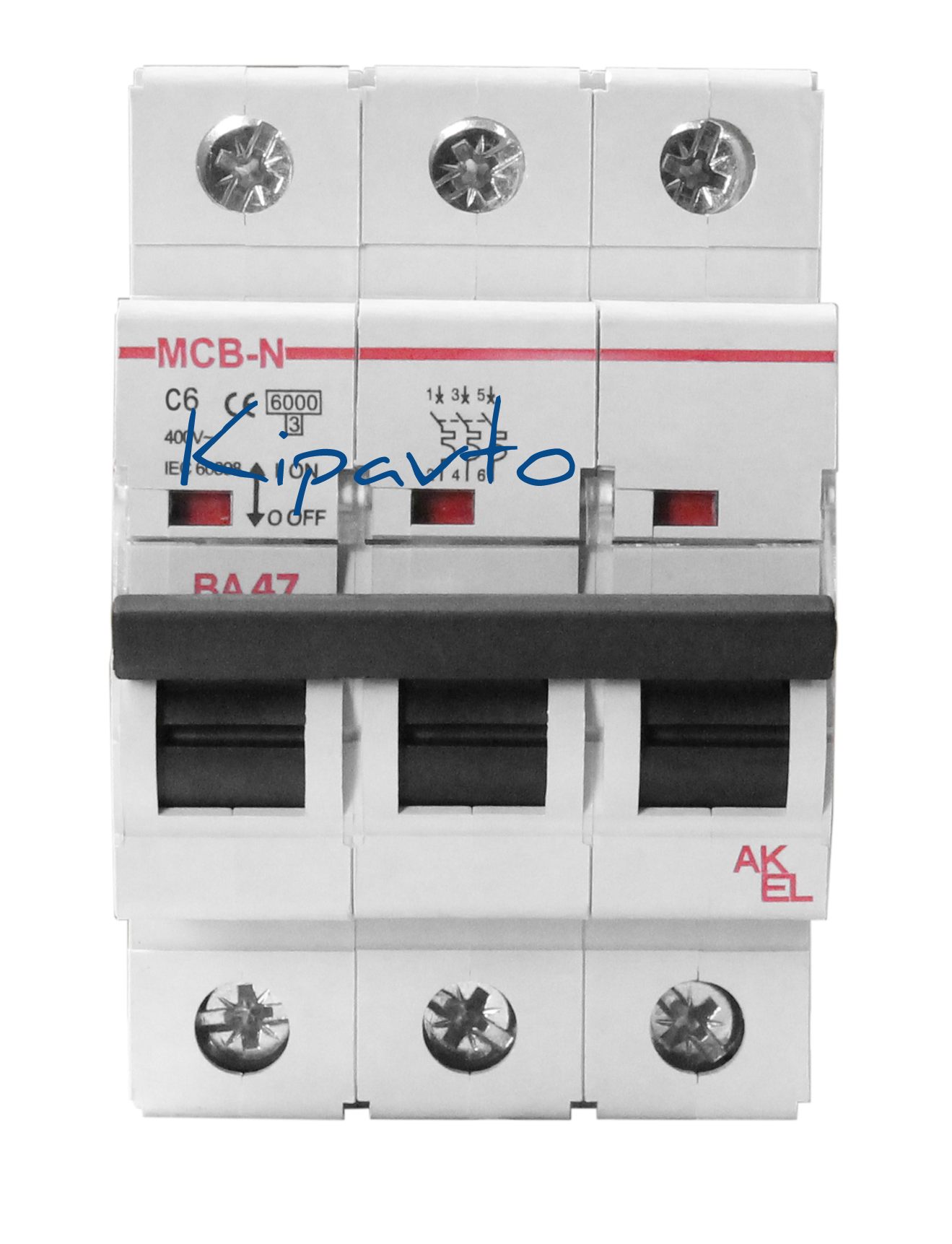 Выключатель автоматический ВА47-MCB-N-3P-C6-AC 3P/6A/C/6кА