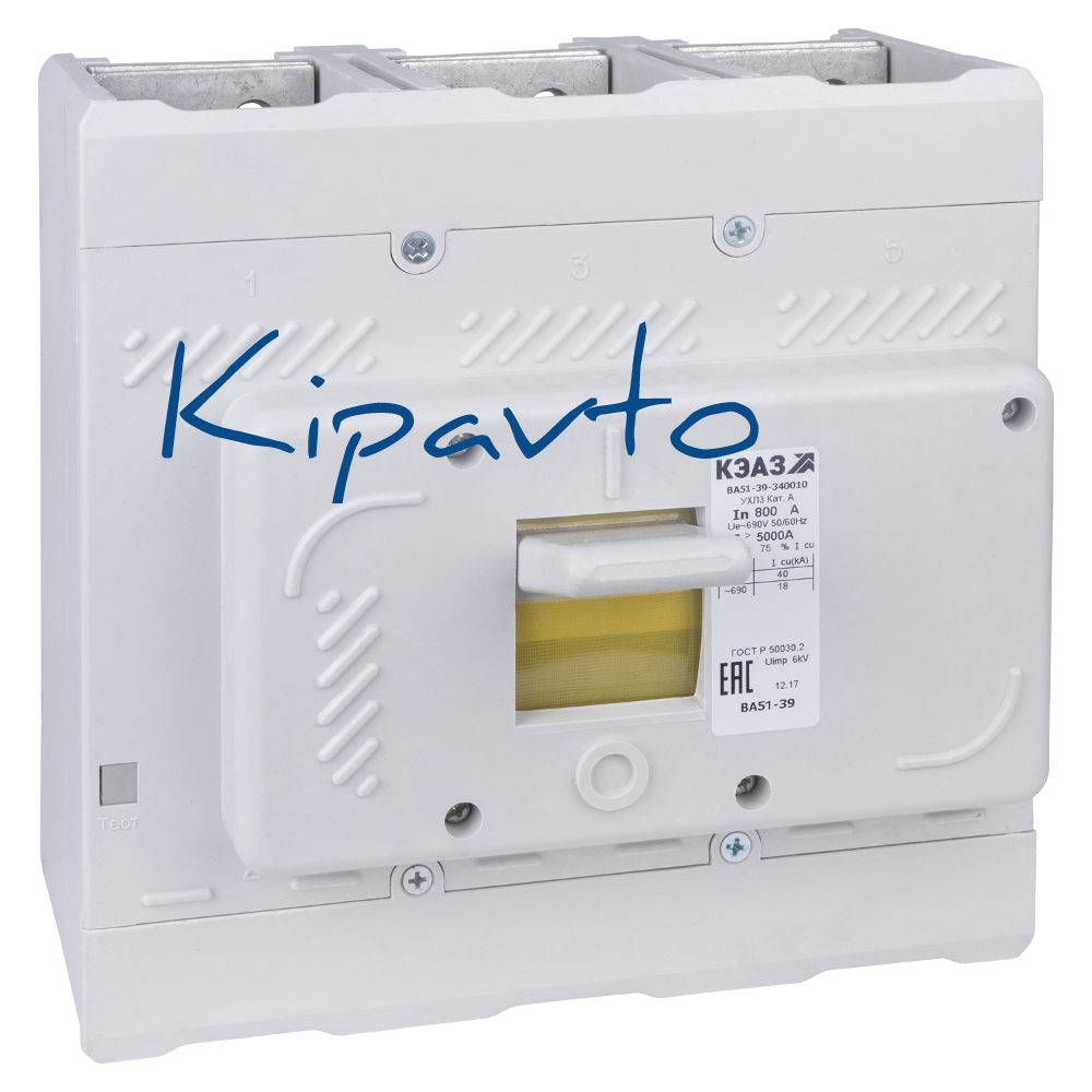 Силовой 3 полюсный автоматический выключатель переменного тока в литом корпусе на номинальный ток 630 А. Трехполюсные автоматические выключатели КЭАЗ типа ВА 51-39 предназначены для применения в электрических цепях с напряжением 400 / 690 В переменного тока частотой 50 и 60 Гц и 440В постоянного тока, их защиты от токов короткого замыкания, токов перегрузки, недопустимых снижений напряжения, а также для нечастых оперативных включений и отключений.