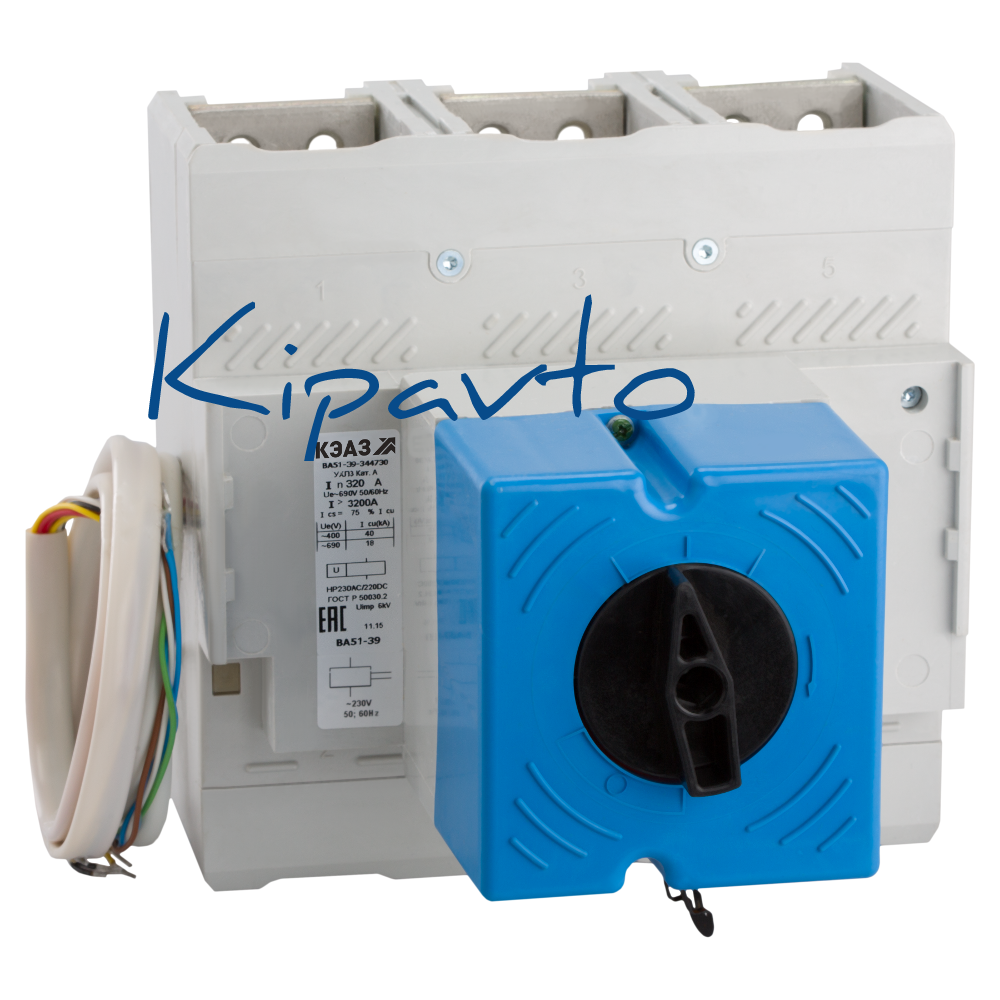 Силовой 3 полюсный автоматический выключатель переменного тока в литом корпусе на номинальный ток 800 А. Трехполюсные автоматические выключатели КЭАЗ типа ВА 51-39 предназначены для применения в электрических цепях с напряжением 400 / 690 В переменного тока частотой 50 и 60 Гц и 440В постоянного тока, их защиты от токов короткого замыкания, токов перегрузки, недопустимых снижений напряжения, а также для нечастых оперативных включений и отключений.