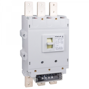 Силовой 3 полюсный автоматический выключатель переменного тока в литом корпусе на номинальный ток 1000 А. Выключатели КЭАЗ предназначены для применения в электрических цепях переменного тока частоты 50, 60 Гц напряжением 690 В, для нечастых оперативных включений и отключений (до 6 в час), указанных цепей и защиты электрооборудования от перегрузок и коротких замыкании, а также нечастых прямых пусков асинхронных двигателей. Выключатели изготавливаются с полупроводниковым максимальным расцепителем тока на базе микроконтроллера Almega 16L.