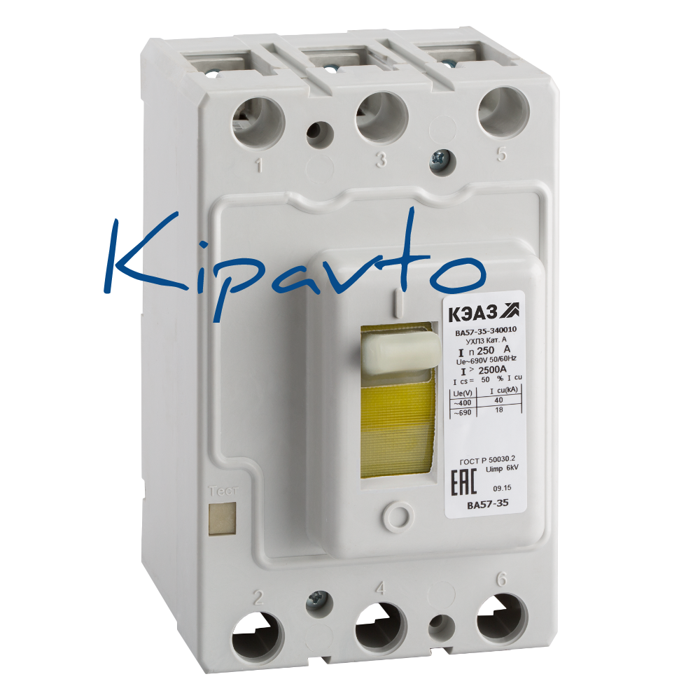Силовой 2 полюсный автоматический выключатель постоянного тока в литом корпусе на номинальный ток 63 А. Трехполюсные автоматические выключатели КЭАЗ серии ВА57-35 предназначены для применения в электрических цепях с напряжением 400 / 690 В переменного тока частотой 50 и 60 Гц и 110 / 220 / 440 В постоянного тока, их защиты от токов короткого замыкания, токов перегрузки, недопустимых снижений напряжения, а также для нечастых оперативных включений и отключений.