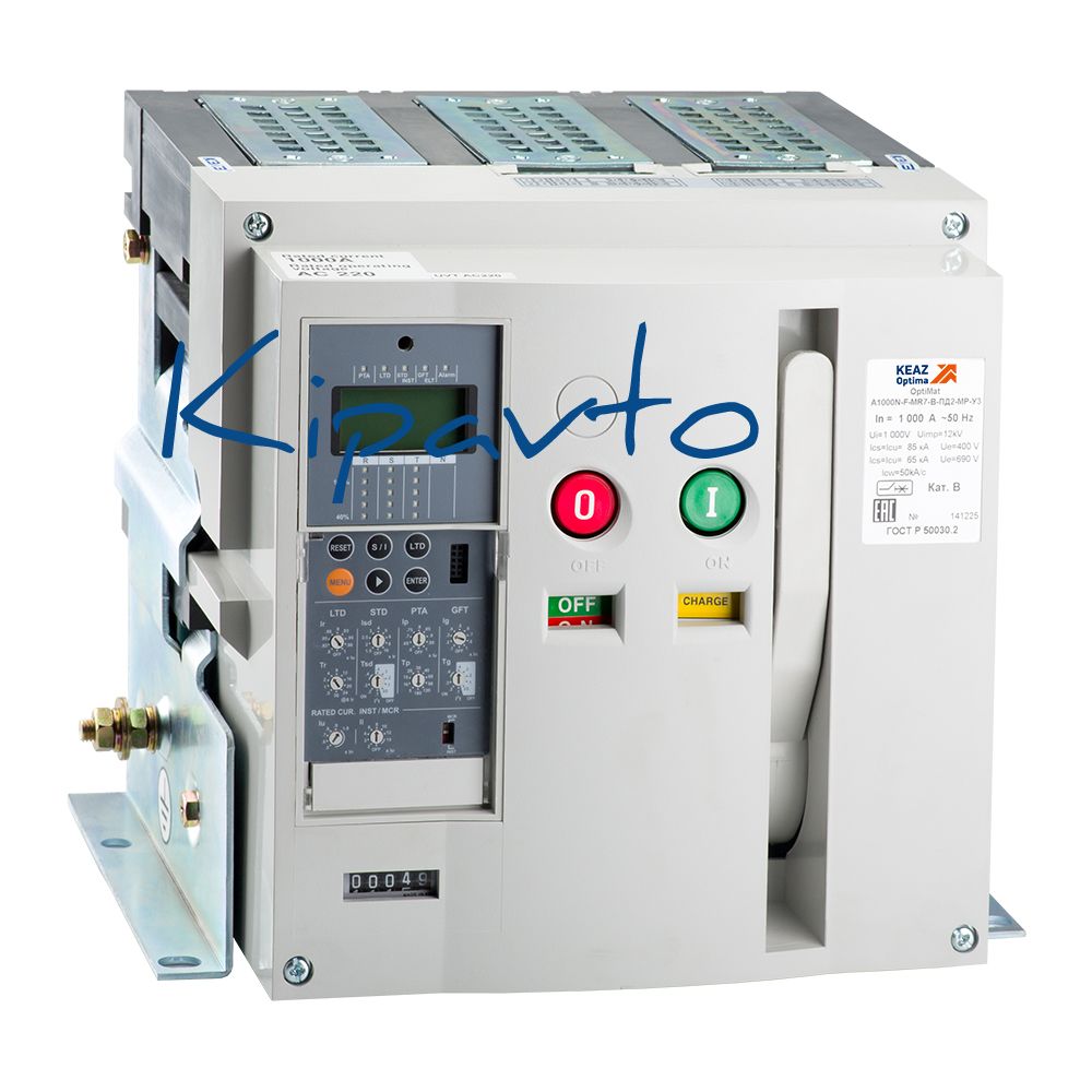 Воздушный автоматический 3 полюсный выключатель переменного тока с предельной коммутационной способностью при переменном токе 85 кА на номинальный ток 1250 А . Воздушные автоматические выключатели OptiMat А производства КЭАЗ используются в качестве вводных и секционных аппаратов для первичного распределения электроэнергии в низковольтных установках. Они предназначены для защиты и нечастого включения электрического оборудования до 6300 A. Благодаря своей конструкции легко справляются с большими мощностями.