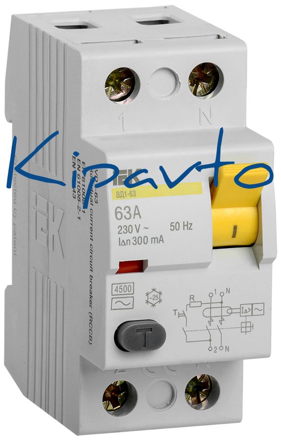 Выключатель дифференциального тока (УЗО) 2п 63А 300мА ВД1-63 АС(Электромеханическое)