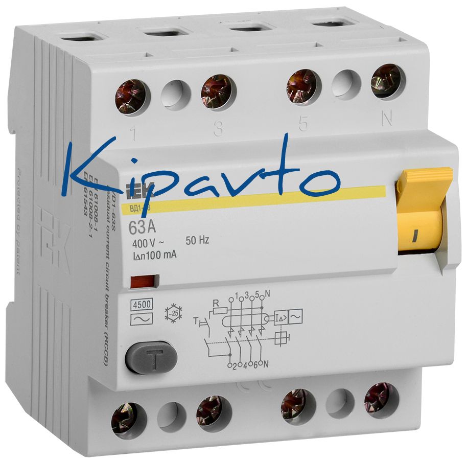 Выключатель дифференциального тока (УЗО) 4п 63А 100мА ВД1-63 АС(Электромеханическое)