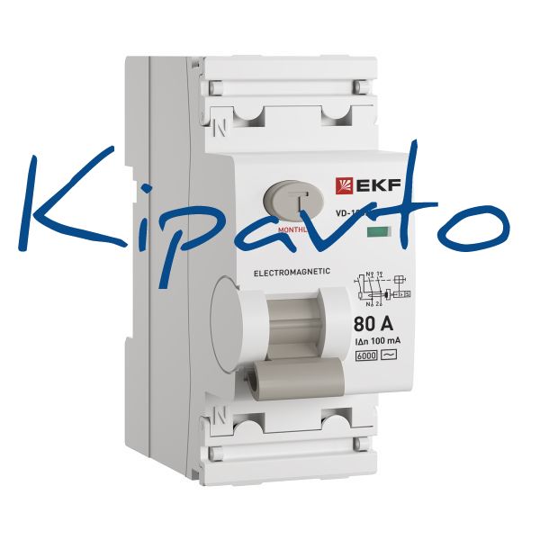 - ВДТ ВД-100N 2P 80А 100мА AC эл-мех 6кА PROXIMA EKF