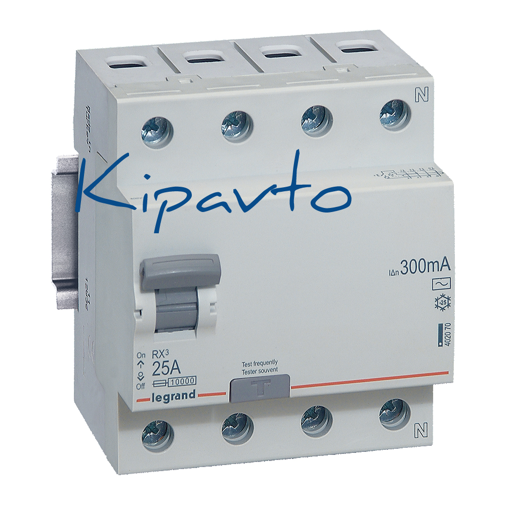 Выключатель дифференциального токаRX3 - 4П - 25 А - тип AC - 300 мА - 4 модуля