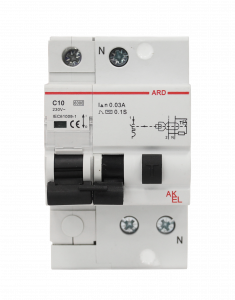 Выключатель дифференциальный автоматический АВДТ-ARD-1P+N-C10-30mA-ТипAC 1P+N/10A/C/AC/30mA/6kA