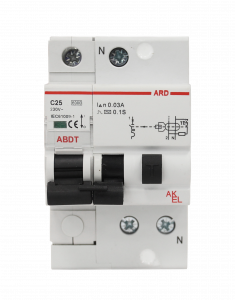 Выключатель дифференциальный автоматический АВДТ-ARD-1P+N-C25-30mA-ТипAC 1P+N/25A/C/AC/30mA/6kA