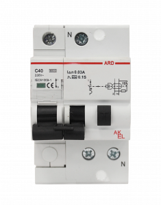 Выключатель дифференциальный автоматический АВДТ-ARD-1P+N-C40-30mA-ТипAC 1P+N/40A/C/AC/30mA/6kA