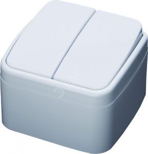 Двухклавишный выключатель, белый Stekker Basic предназначен для открытой установки, не требует много времени и сил для монтажа. Изделие служит для включения и выключения разнообразных приборов освещения.