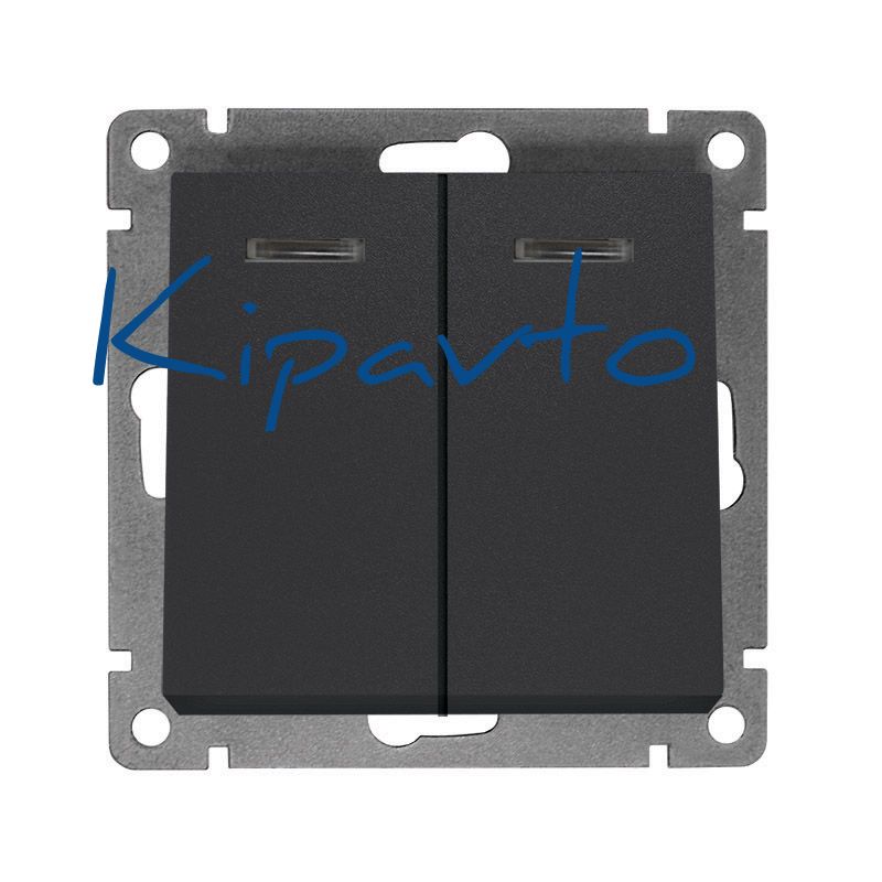 Выключатель двухклавишный с подсветкой UNIVersal серия Афина, с/у, 10А, 220В, графит (еврослот), механизм