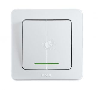 Выключатель двухклавишный скрытый с индикацией белый 10А
