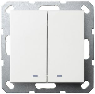 Выключатель двухклавишный со светодиодами 10A 250V~ с накладкой, цвет белый глянцевый