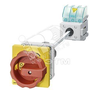 Выключатель главный аварийный 4п IU=16 P/AC-23A при 400V=7.5KW нижнего крепления на монтажную рейку или крепление двумя отверстиями поворотный привод желто-красный