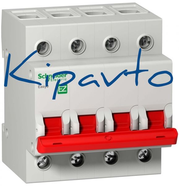 Выключатель-разъединитель серии Easy9 Schneider Electric, 4-полюсный, номинальный ток 63 А, с красной рукояткой управления. Предназначен для включения и отключения нагрузок в трехфазных сетях напряжением 400 В. Категория применения -AC-22A Двойной разрыв цепи обеспечивает гарантированное отключение питания и отсутствие сваривания контактов. Крепление защёлкиванием на DIN-рейке шириной 35 мм. Любое установочное положение.