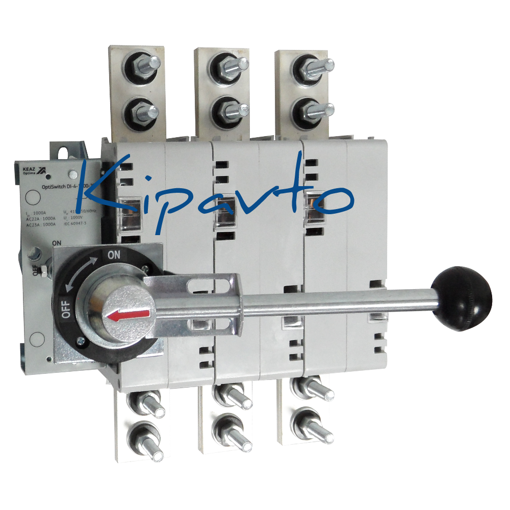 Выключатель нагрузки 3 полюсной на номинальный ток 1000 А. OptiSwitch DI — линейка современных выключателей и переключателей на токи до 3150А. Рубильники незаменимы для обесточивания и переключения нагрузки электроцепей постоянного и переменного тока. Используются в шкафах распределительных систем, трансформаторных подстанциях и иных низковольтных комплектных устройствах, предназначенных для распределения и передачи электроэнергии.