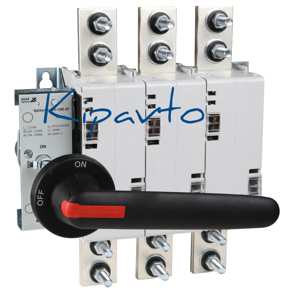 Выключатель нагрузки 3 полюсной на номинальный ток 1250 А. OptiSwitch DI — линейка современных выключателей и переключателей на токи до 3150А. Рубильники незаменимы для обесточивания и переключения нагрузки электроцепей постоянного и переменного тока. Используются в шкафах распределительных систем, трансформаторных подстанциях и иных низковольтных комплектных устройствах, предназначенных для распределения и передачи электроэнергии.