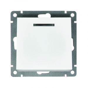 Выключатель одноклавишный с подсветкой UNIVersal серия Афина , с/у, 10А, 220В, механизм, белый (еврослот)