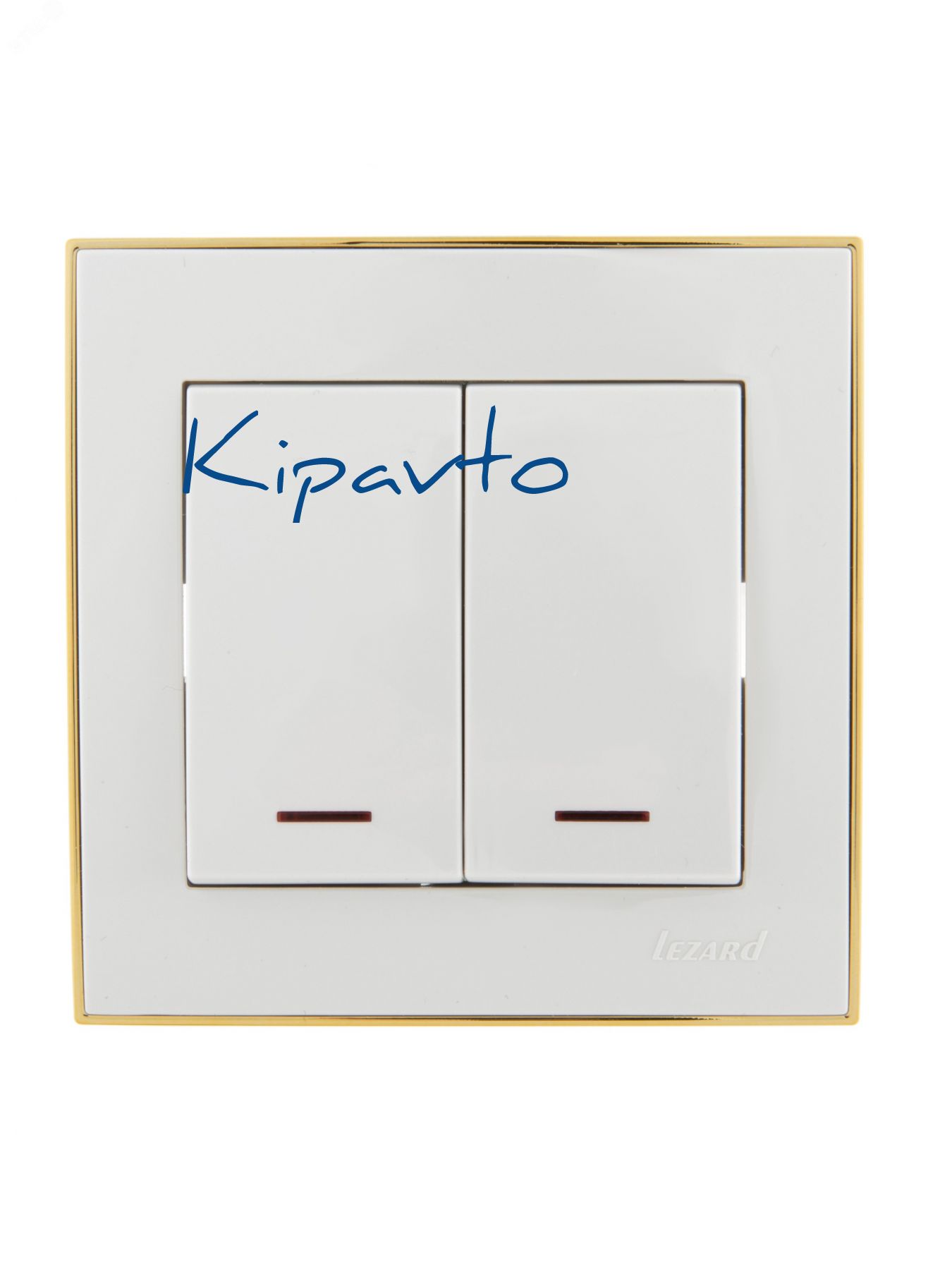 Выключатель RAIN двойной с подсветкой белый с боковой вставкой золото