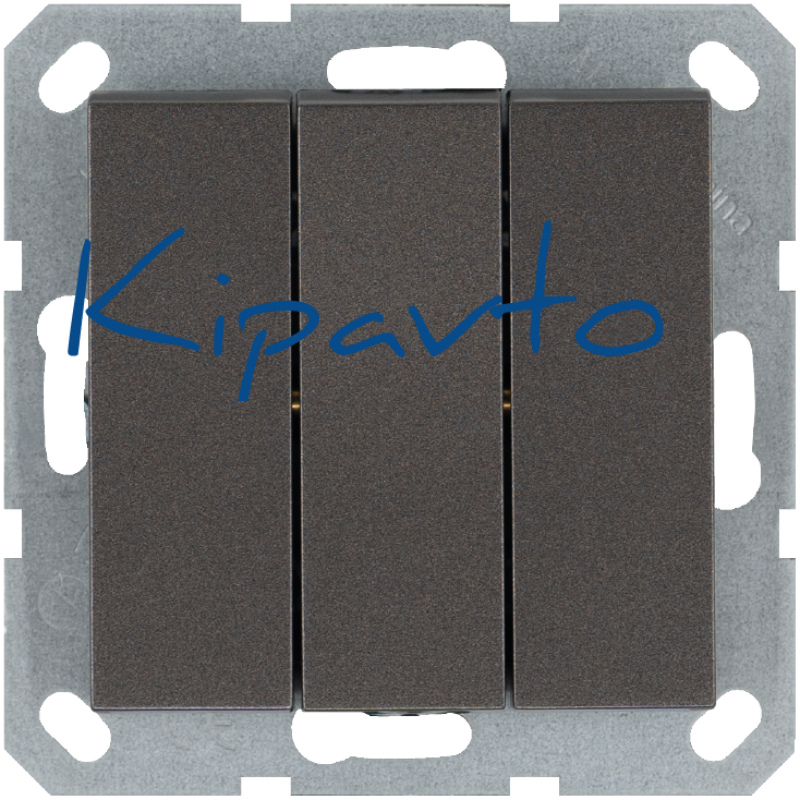 Выключатель трехклавишный 10A 250V~ с накладкой, цвет Мокко