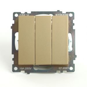 Выключатель трехклавишный (механизм) серия Катрин золото STEKKER