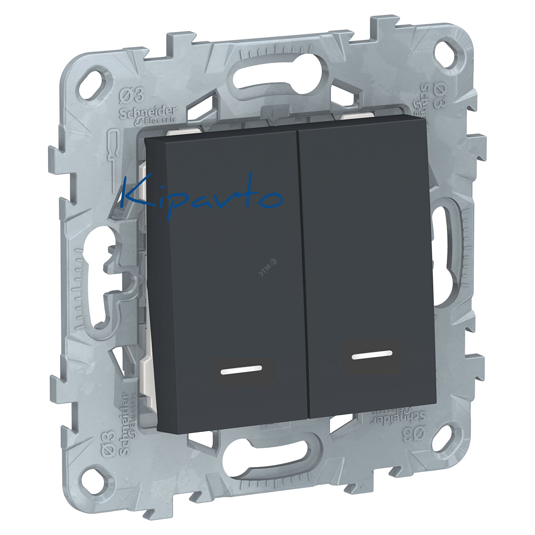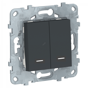 Выключатель UNICA NEW двухклавишный 2 модуля с подсветкой 2 х схема 1а антрацит