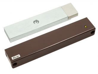 ALer AL-400-24V Premium (коричневый) - представляет собой накладной электромагнитный замок, который устанавливается на деревянные и металлические двери. Устройство имеет встроенный датчик контроля замка и датчик положения двери, а также световую индикацию.Устройство выполнено в корпусе коричневого цвета