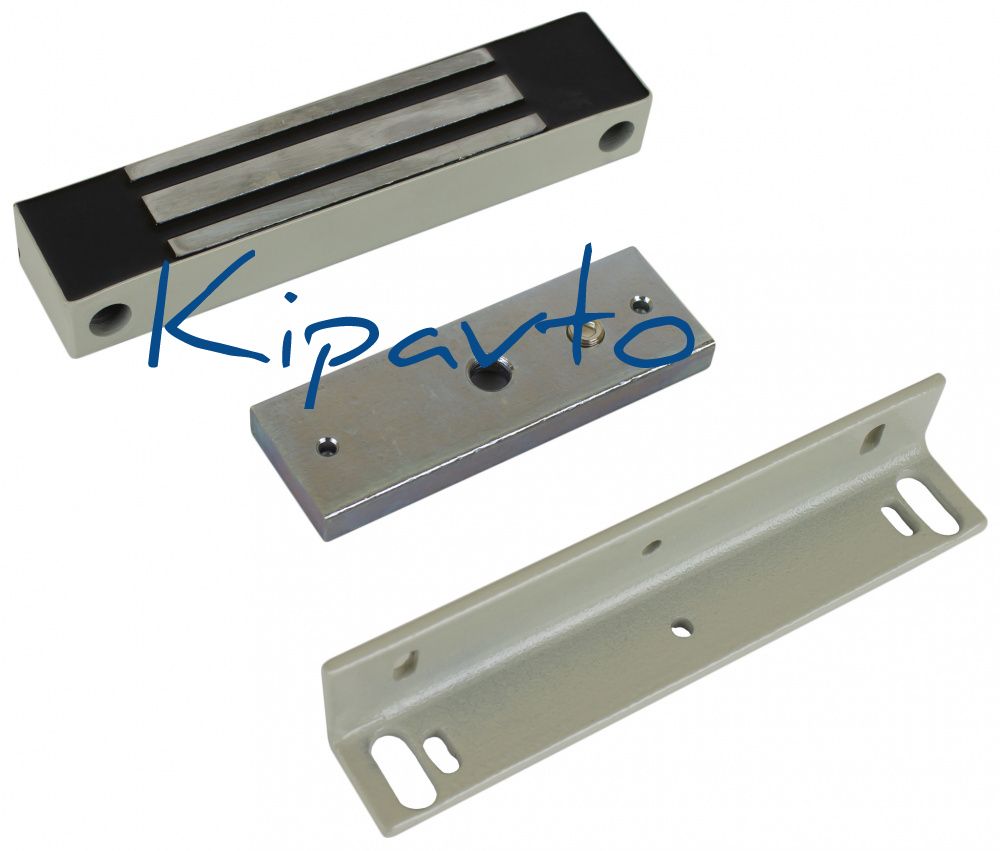 Электромагнитный влагозащищенный замок, габаритные размеры 180x33x23 мм, уголок в комплекте. Механический компенсатор эффекта остаточной намагниченности на якоре замка