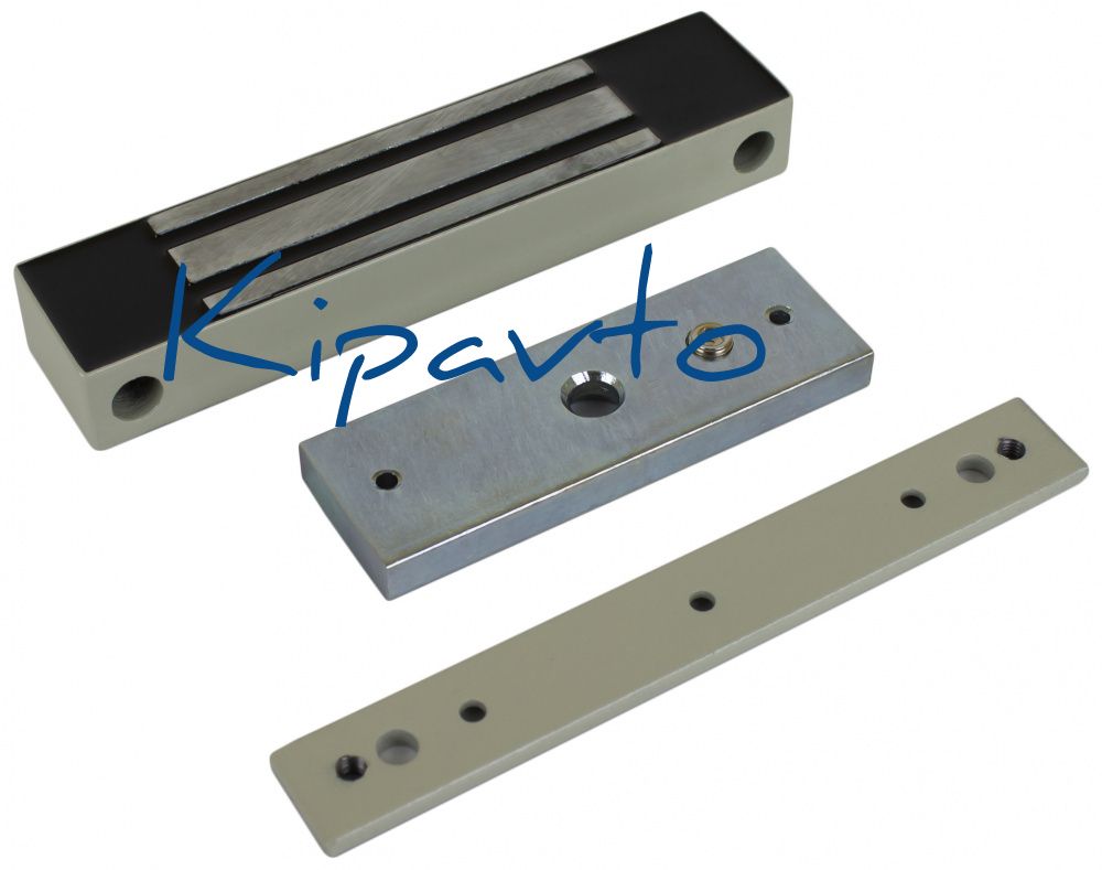 Электромагнитный влагозащищенный замок габаритные размеры 180x33x23 мм. Планка в комплекте. Механический компенсатор эффекта остаточной намагниченности на якоре замка