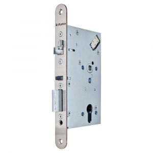 Замок накладной, НЗ, универсальный DIN, цилинр снаружи, кнопка изнутри, питание 12VDC/1А, -40град.+50град.С, нержавеющая сталь.